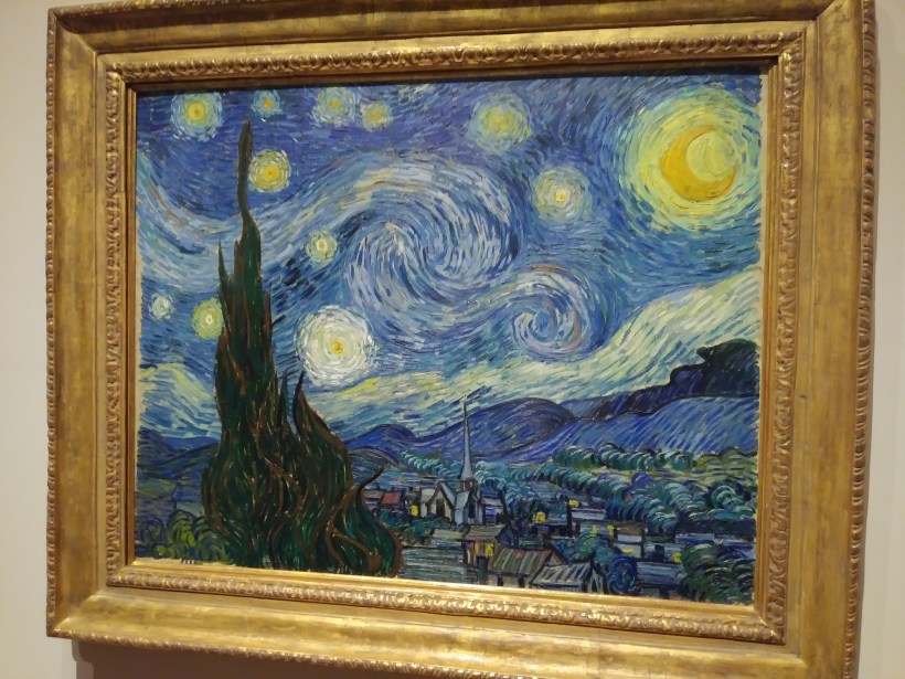 After several minutes, I took close up pictures of the details, wiped my eyes, and posed for two selfies. The guard standing next to the painting asked, “You good now?” and we both laughed. I walked around for a few minutes figuring I should make an attempt to show interest in the other art, but my heart wasn’t into it and I found myself back in front of Starry Night.
